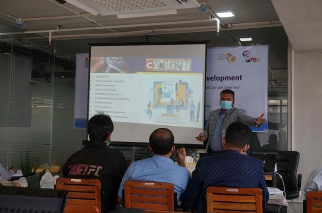 (Ikbalさん)2021年6月から、日本人専門家による研修の補佐やベンガル語での研修講師を行いました。また2019年時点で在籍していた企業が本プロジェクトでモデル企業となったことでモデルライン[1]の構築にも参加していました。