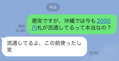ところで、かの二千円札は、沖縄県では現在も普通に使われているのはご存じでしょうか?